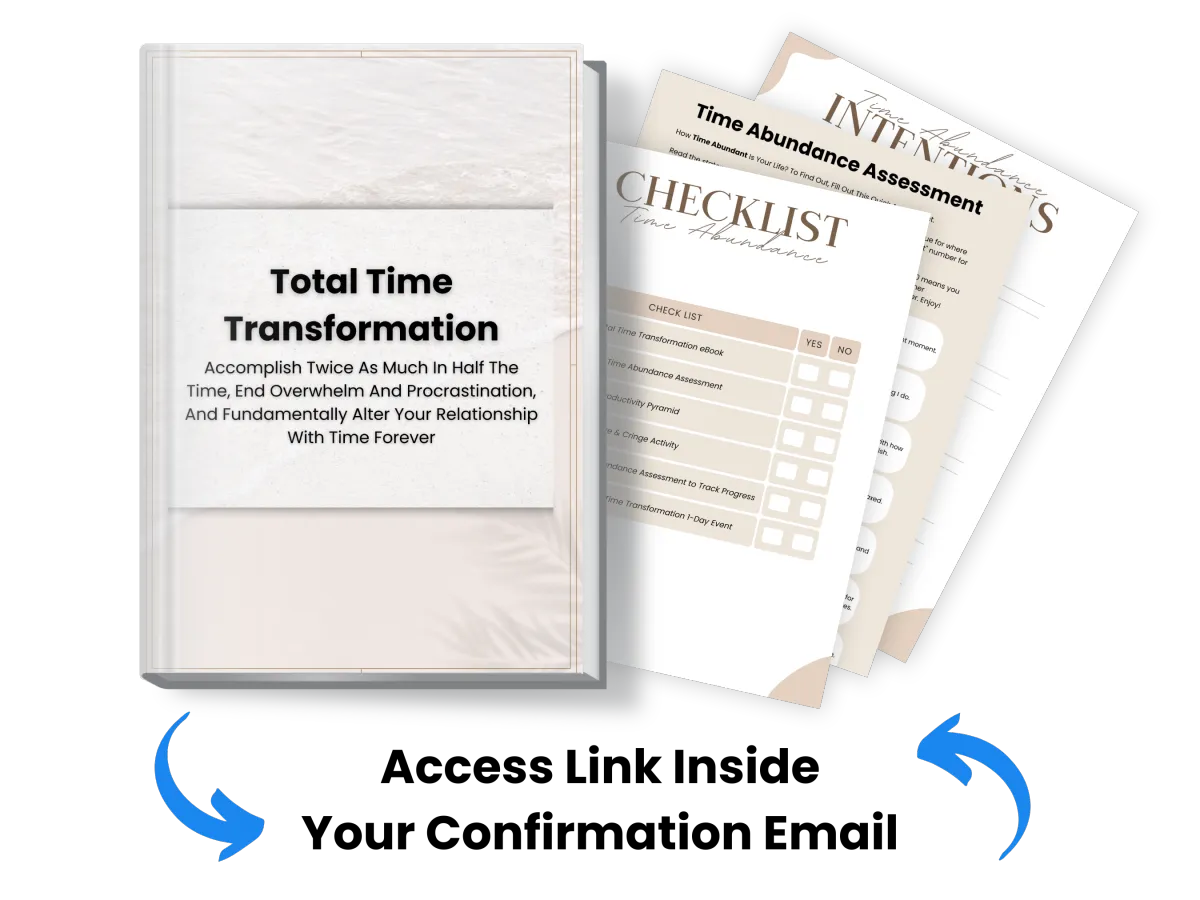 Download Your eBook: Start shifting your relationship with time right now. The Total Time Transformation eBook is your roadmap to more clarity, freedom, and peace—before we even go live with the event. You'll find the access link in your confirmation email.